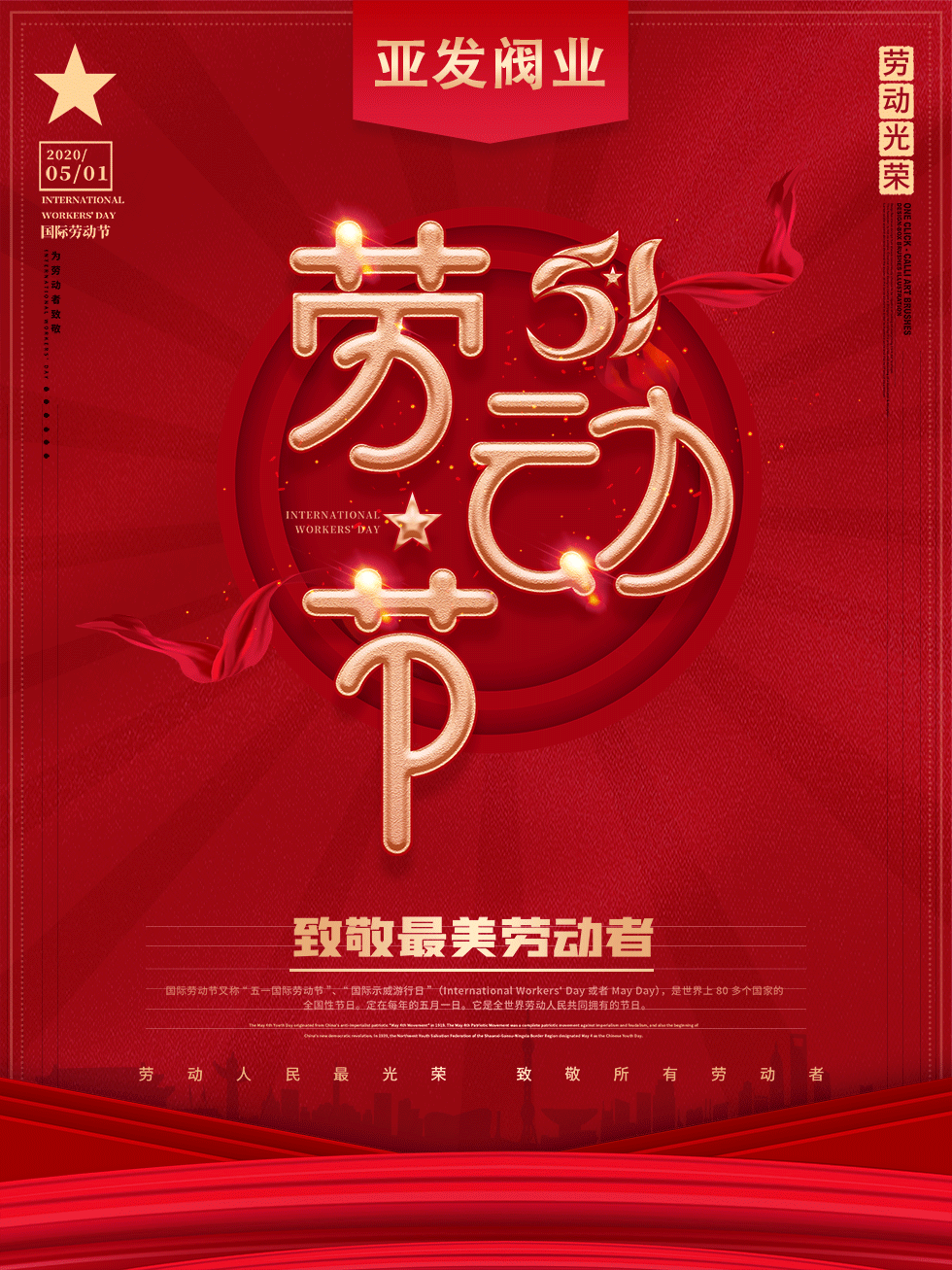 一年一度的五一小長(zhǎng)假將至,在這里浙江亞發(fā)閥業(yè)有限公司全體員工向您及您的家人送出最真摯的祝福,提前祝大家勞動(dòng)節(jié)快樂(lè)!